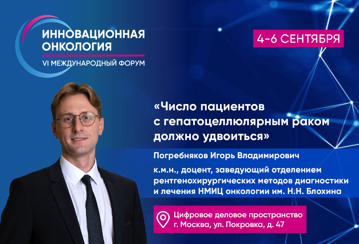 На форуме «Инновационная онкология», который пройдет в Цифровом деловом пространстве» в Москве с 4 по 6 сентября 2025 года обсудят новые подходы к лечению пациентов с гепатоцеллюлярным раком. Игорь Погребняков, заведующий отделением рентгенохирургических методов диагностики и лечения, рассказывает, какие инновации будут полезны в работе и почему онкологам стоит готовиться к взрывному росту числа пациентов с такой патологией.