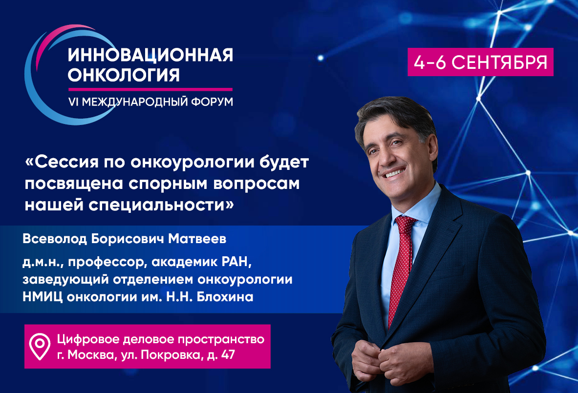 О предстоящем форуме «Инновационная онкология» 2025 рассказывает Всеволод Борисович Матвеев, академик РАН, заведующий отделением онкоурологии НМИЦ Блохина